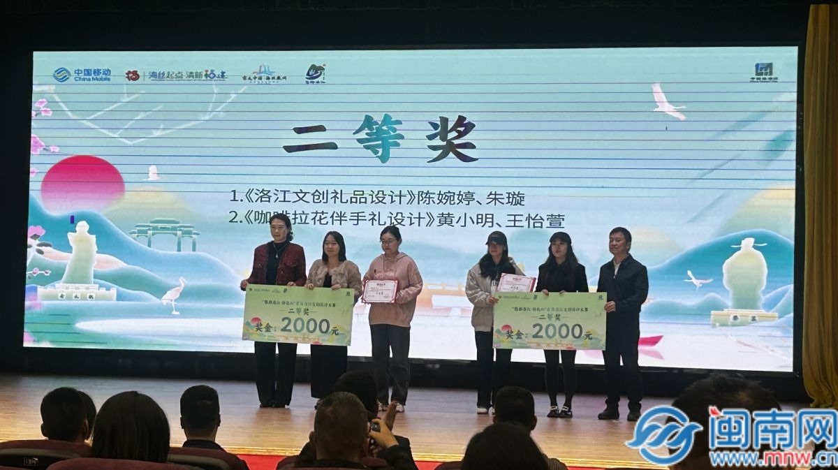 頒獎典禮上,頒獎嘉賓為獲獎者依次頒發了證書和獎金。現場還舉行了“悠游洛江·移起AI”首批洛江文化創意孵化基地授牌儀式。