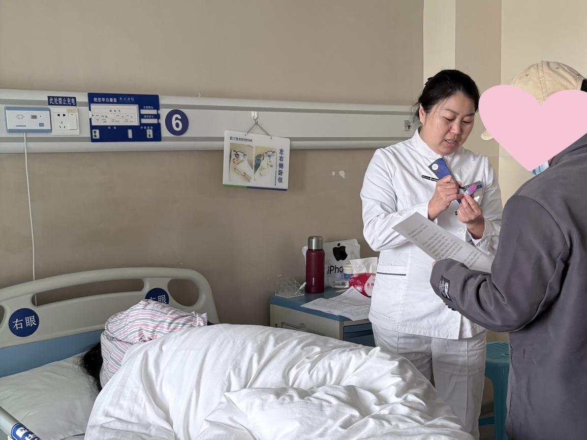 術后,惠光愛爾眼科醫院的護理團隊為鄭阿姨安排了精心的護理和嚴密的復查流程。對于常人來說簡單的一句話,跟鄭阿姨卻需要幾遍的反復溝通。為確保健康宣教到位,護理人員運用書寫、圖示確認鄭阿姨的恢復情況,指導她科學用藥。夜間,護理人員主動增加巡視次數,用實際行動傳遞著超越語言的關懷。